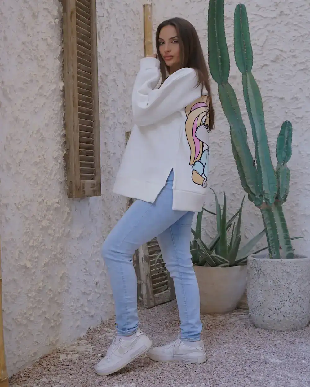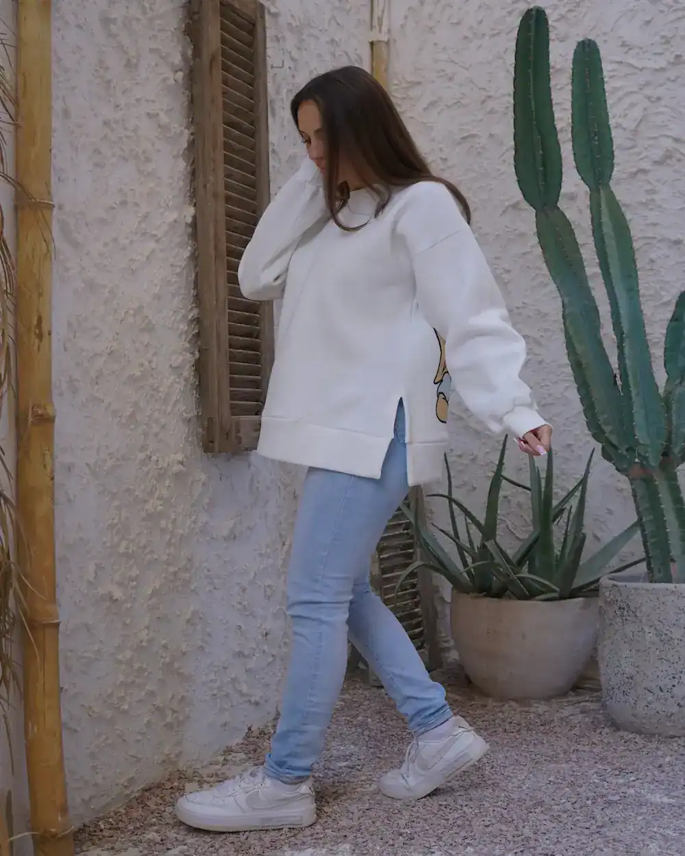 - Comfortable oversized fit with a modern look.